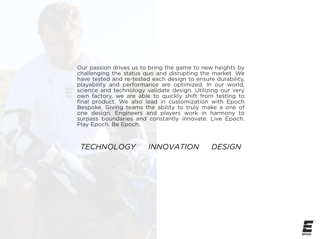 Epoch Lacrosse is a technology and design company focused on creating the highest-quality lacrosse equipment on the market. Innovation, technology and design are the heart of their organization and their content needs to reflect that. As a creative and content intern I gained experience in adobe suite, the art of storytelling for business, and how to manage marketing projects such as photoshoots and interviews. Below are projects I worked on during my time at Epoch.