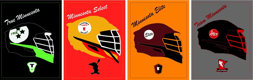 This was an Illustrator project to create a series of cards. I chose Minnesota club lacrosse teams as my subject. I spent a majority of the project tracing images. Once I had tracings for each helmet and team logo, I formatted them into one image with equal spacing.
